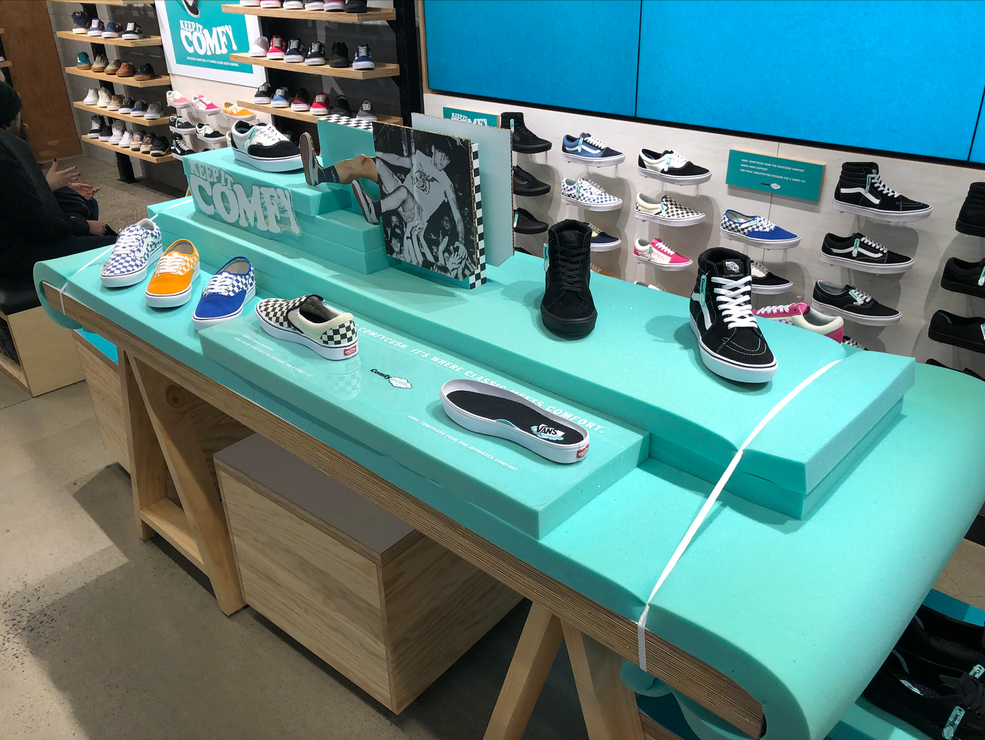 Retail design for Vans Comfycush Spring 2019 Collection. A large scope of design from a global design direction to executions in North America region, varying in budgets and scales.