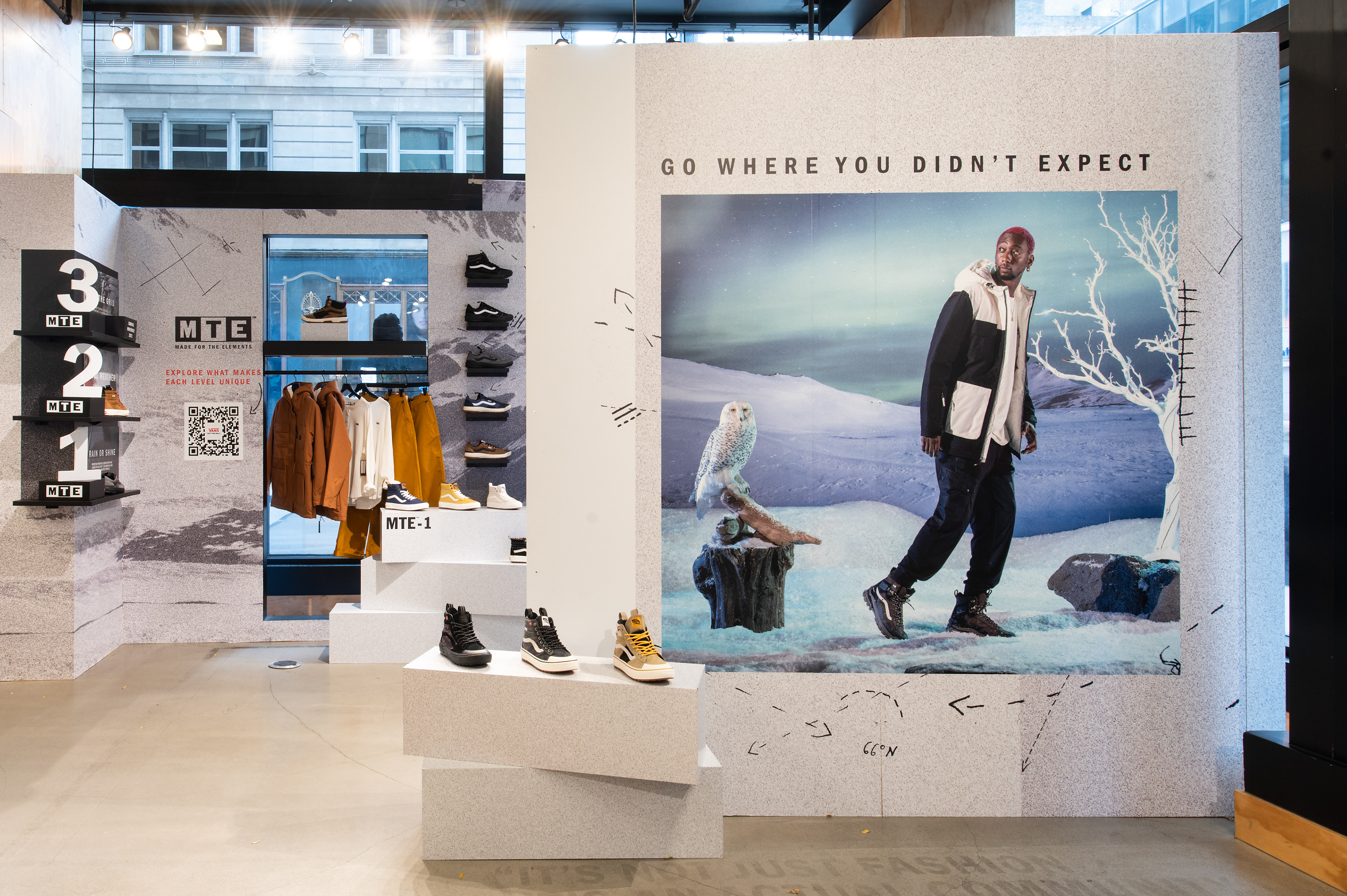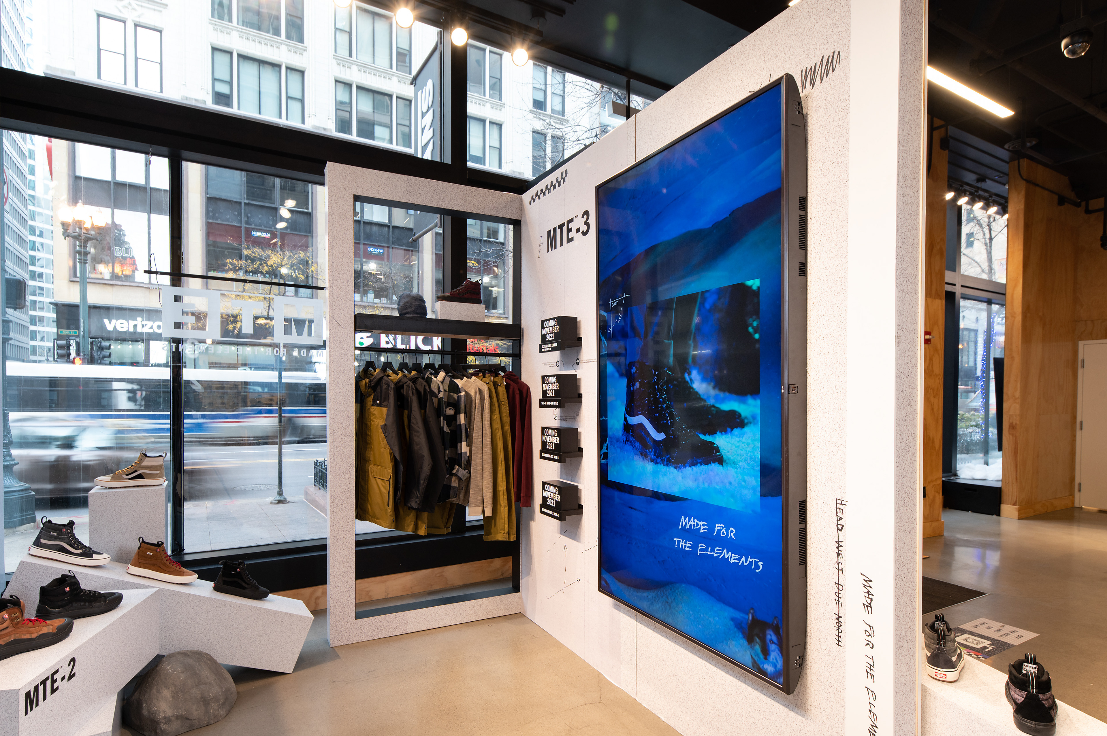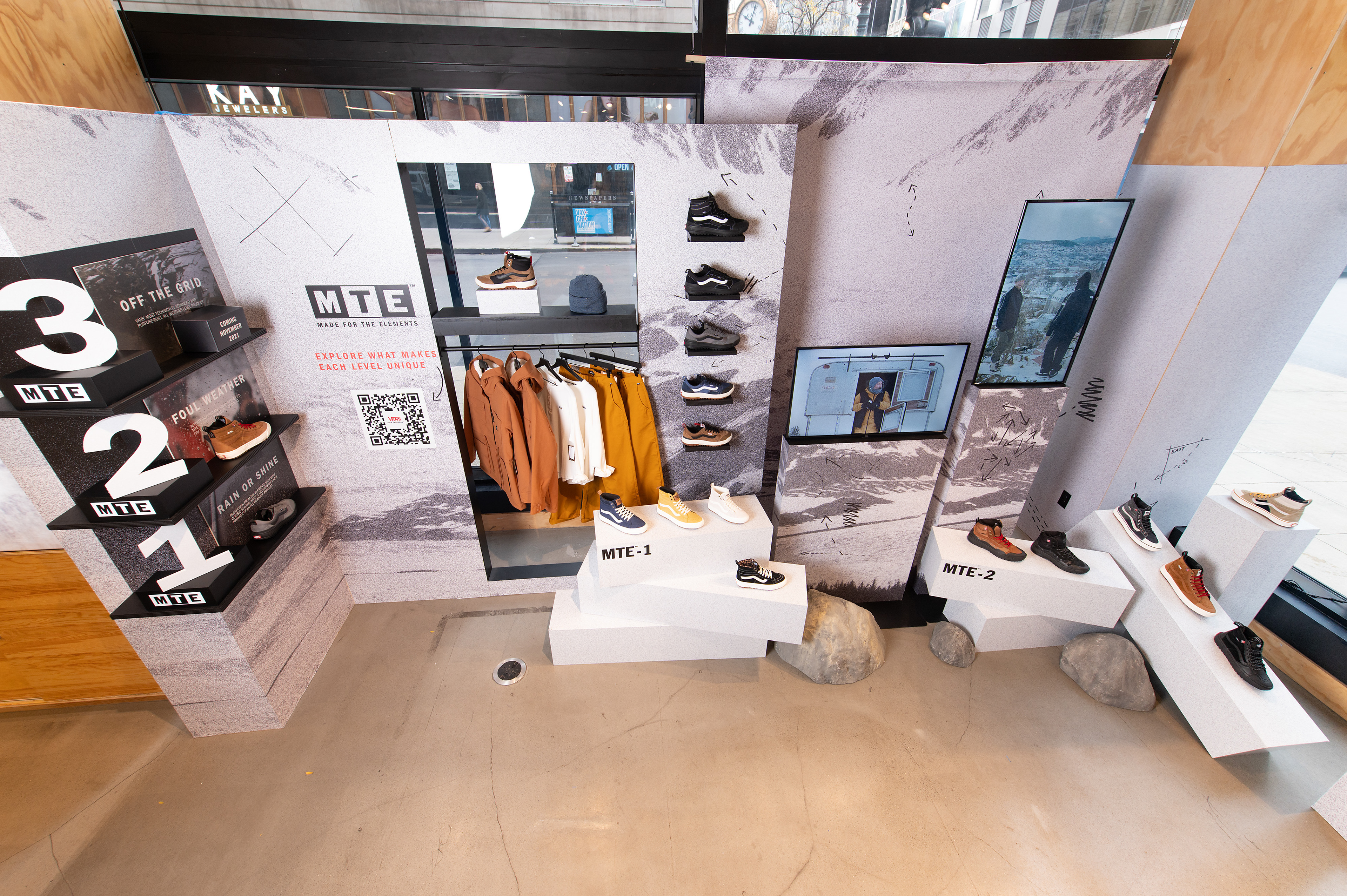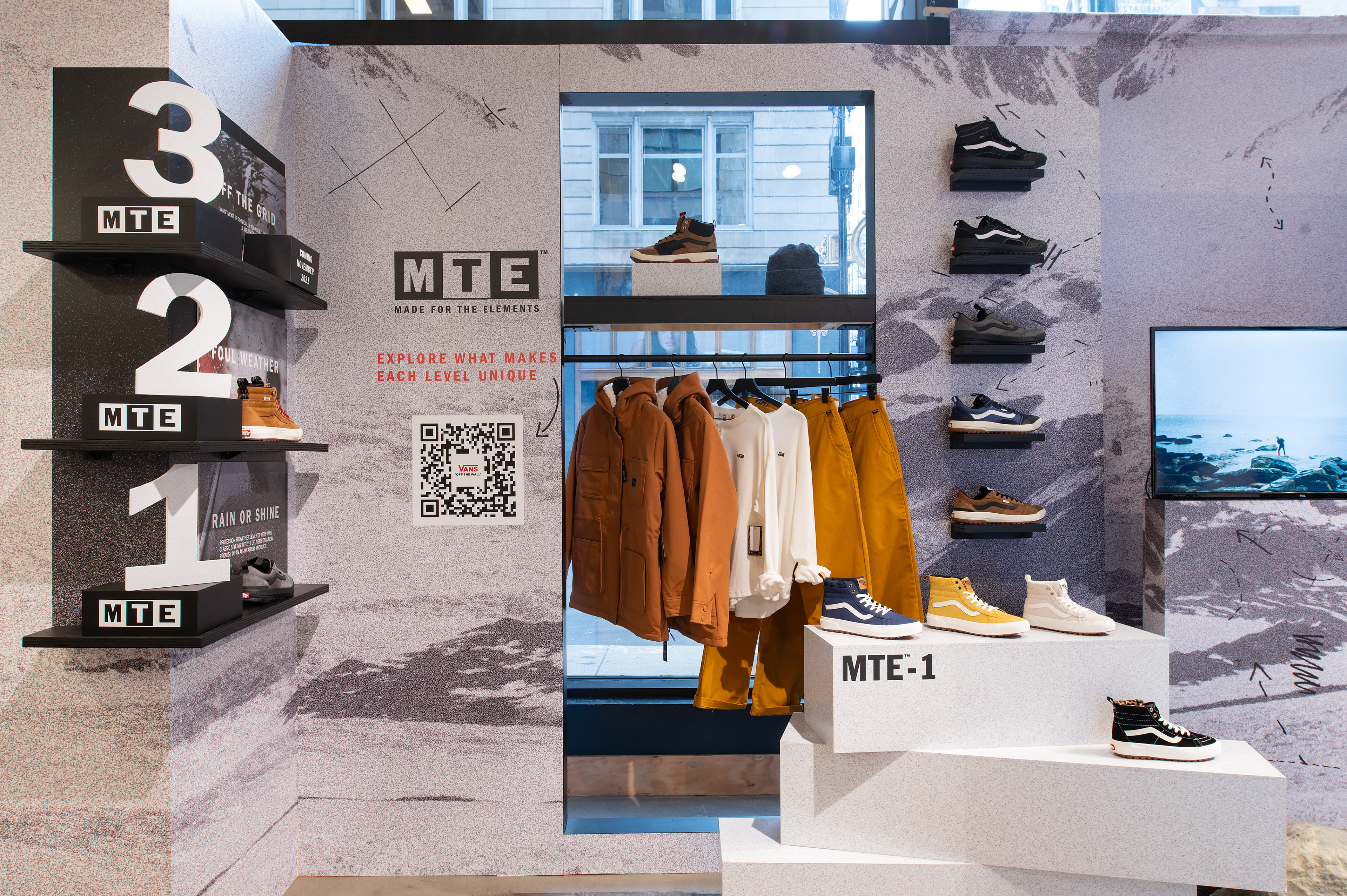 An immersive retail design that highlights Vans‘ MTE Fall 2021 collection. These spaces also aim to educate consumers of the different levels that the collection offers.