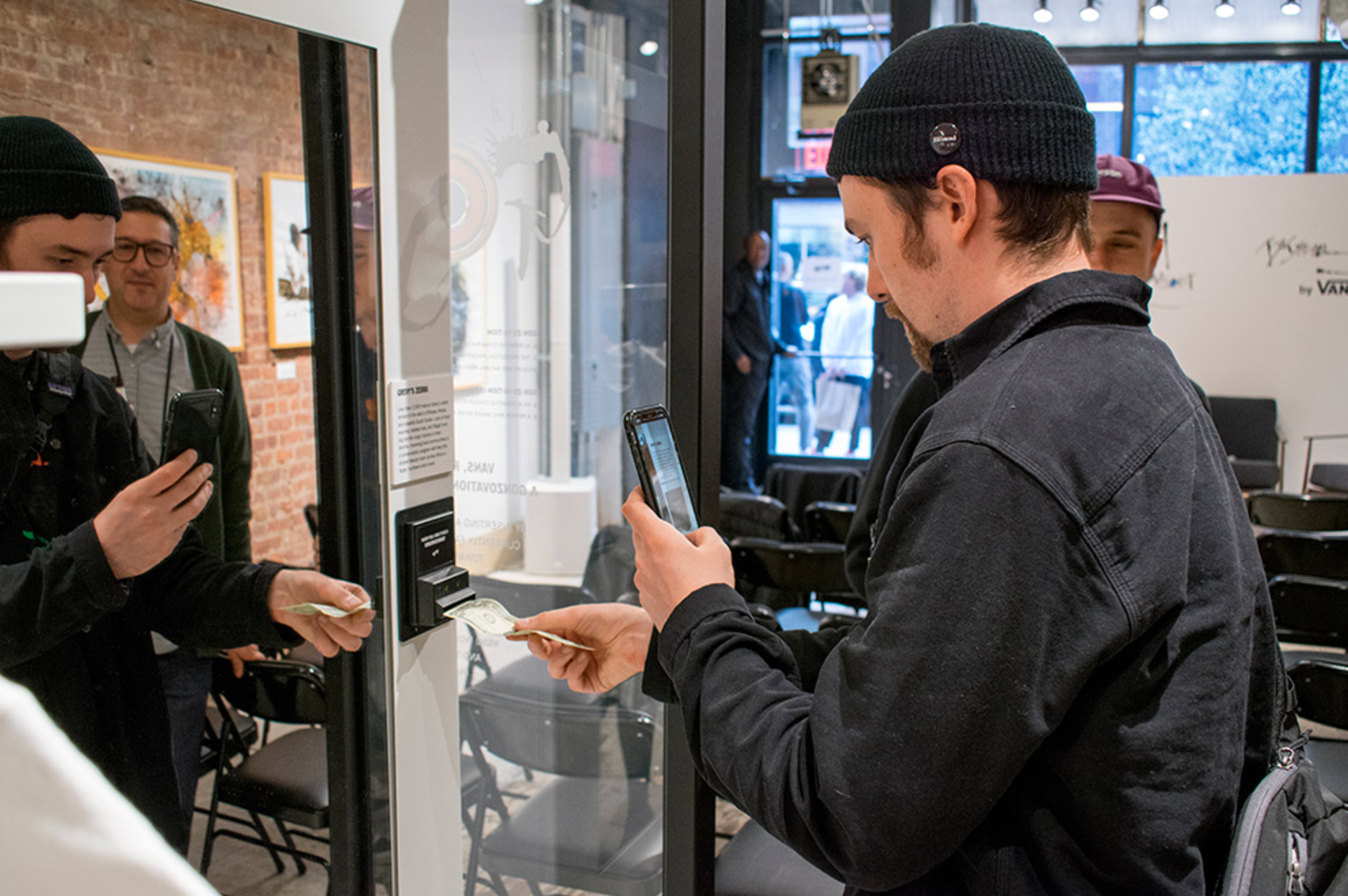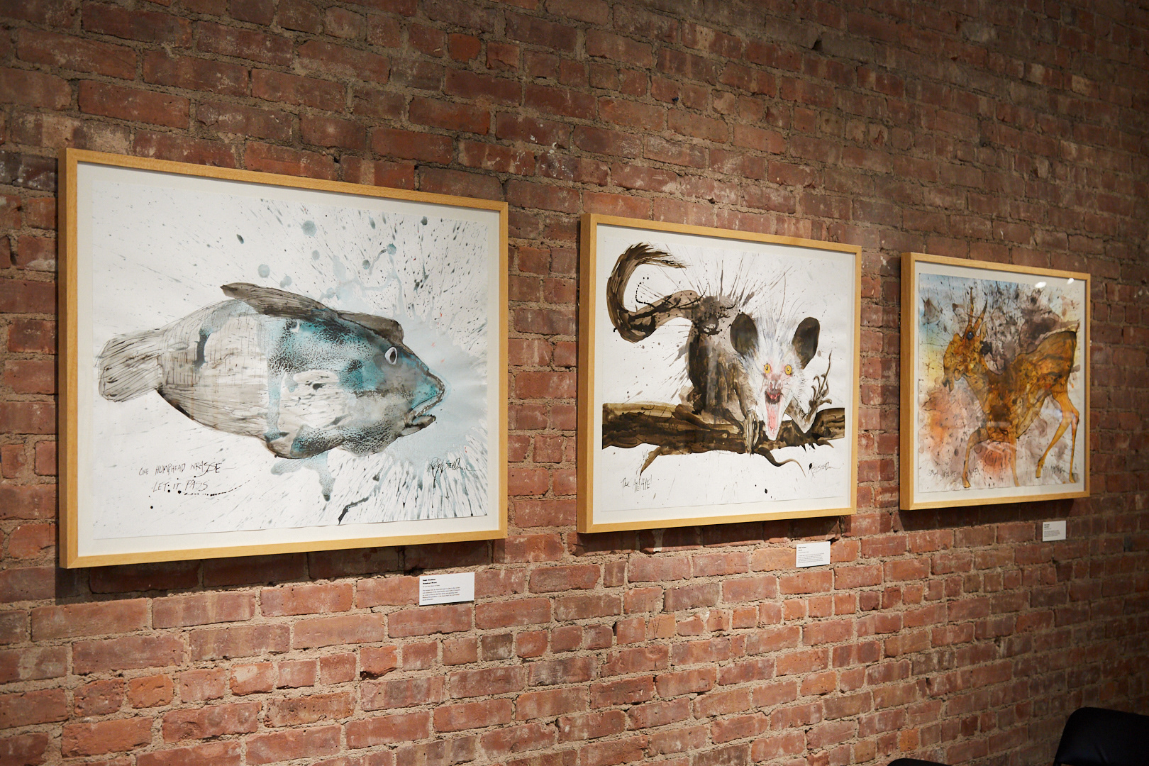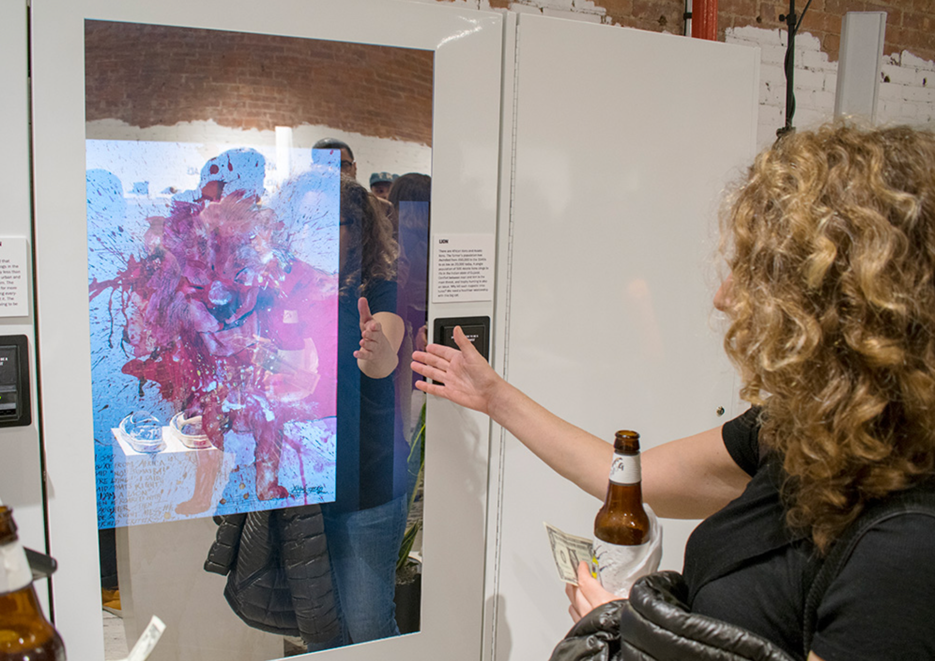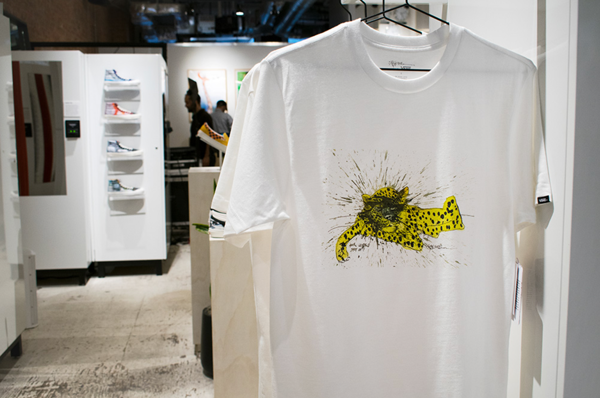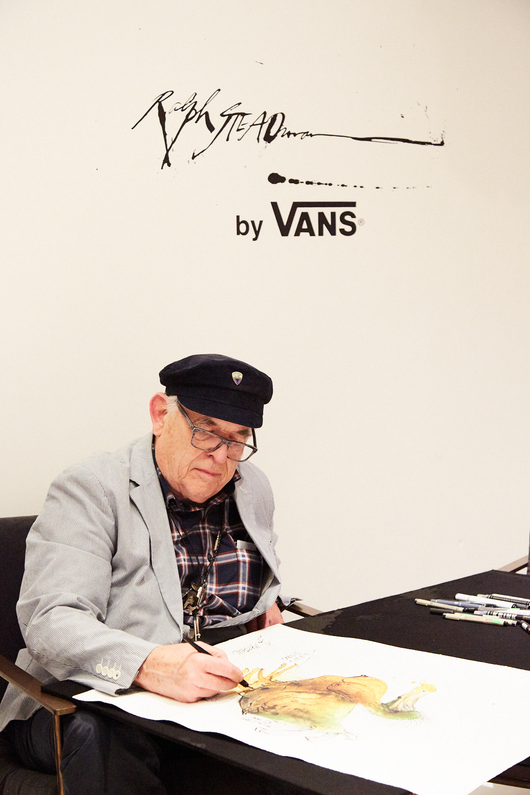 A collection launch event partnered with WildAid to help raise awareness for animal endangerment. The pop up exhibited a modern-day vending machine that illuminated to momentarily reveal Steadman's artwork upon inserting a cash donation into the device.